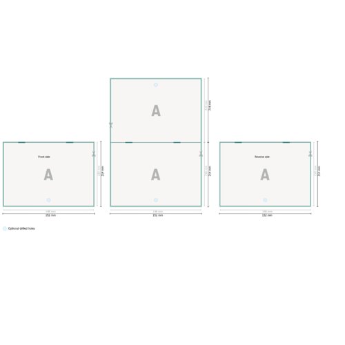 - hanger: top centre perforation (Ø 5 mm), 7.5 mm from the sheet edge
