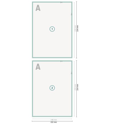 - Include a surrounding trim of 2 mm, important information should be at least 4 mm from the edge of the final format size
