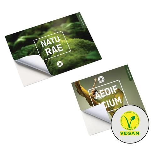 Print stickers online to spice up window displays, personalize promotional gifts, organize office communication or place advertising on various surfaces. This is made easy with our variety of films and sizes to create personalised stickers. We have the right material for any occasion: Whether PVC film for large-sized adhesive film, structured paper for circular stickers on rolls, adhesive paper for address labels or Stafix, electrostatic stickers.