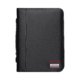 - A4 briefcase folder made of high-quality bonded leather, with zipper, pockets, business card slots, pen loop, smartphone holder and tablet stand, ring binder mechanism, and lined block with a small calendar impression
