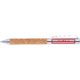Metal ballpoint pen with cork elements, clip and push mechanism.