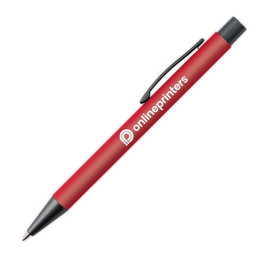 - Plastic ballpoint pen with blue-writing refill, coloured shaft and metal clip