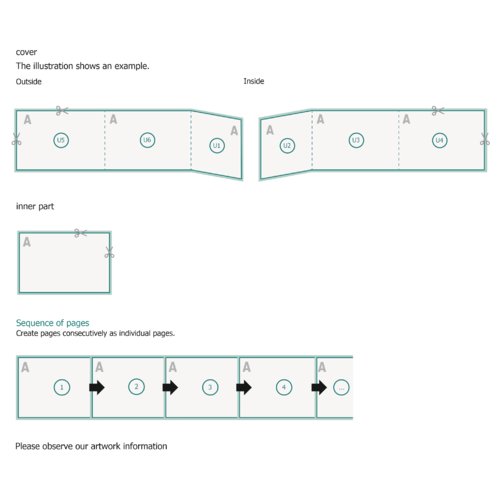• Note: With a 6-page cover, you must create the outside pages shorter. Please find details on that in Special Characteristics.