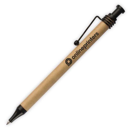 Brown cardboard ballpoint pen with clip and push mechanism.