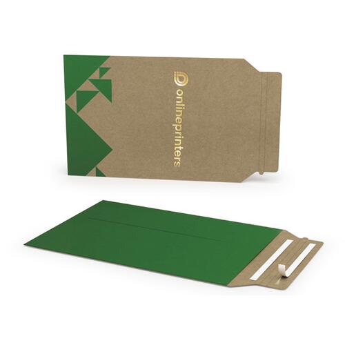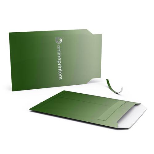 - with adhesive strips and a perforated tear strip at the closing flap (short side)
