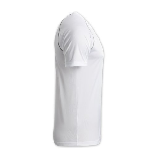 White polyester T-shirt with short sleeves.