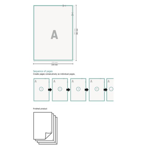 Artwork information Loose leaf paper, A4, 21 x 29.7 cm, portrait, four-colour print on one side (4/0)