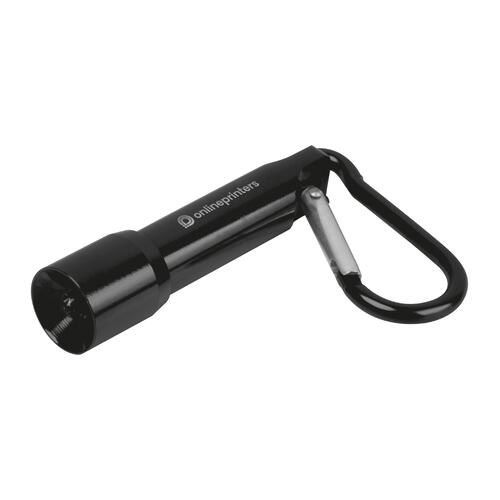 - Mini flashlight with carabiner hook made from recycled aluminum