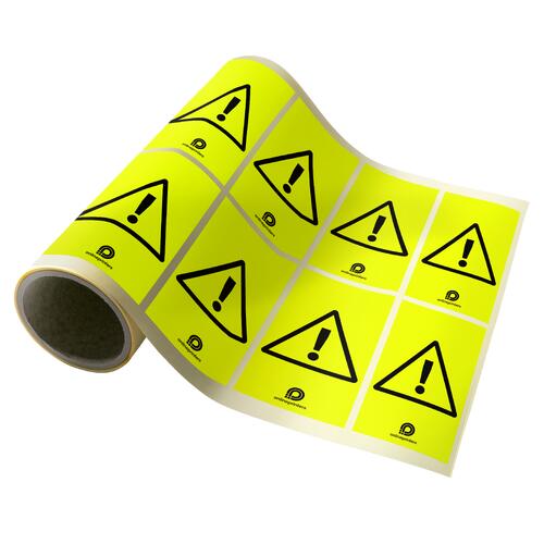 Übereinander gestapelte, neon-gelbe Etiketten, selbstklebend