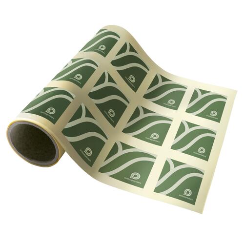Grünes, selbstklebendes Etikett in Detailansicht