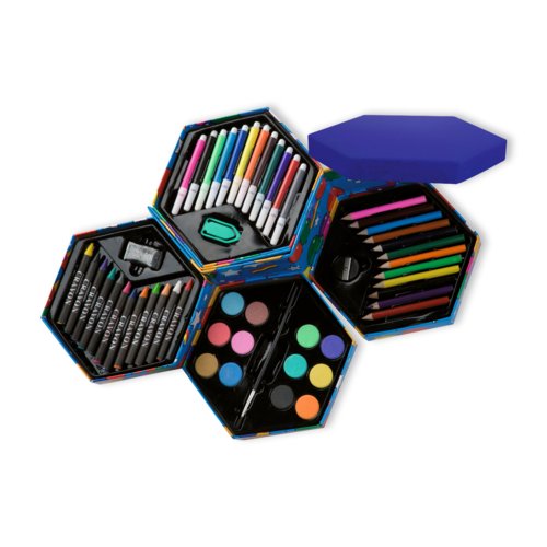 - information: crayons, felt tip pens, wax crayons, paint-box, eraser, plastic sharper, plastic paper clip