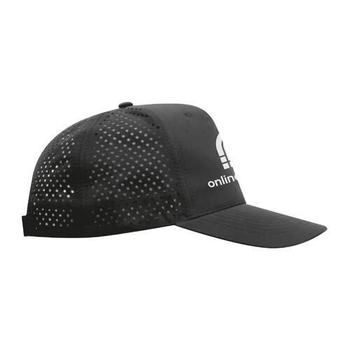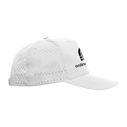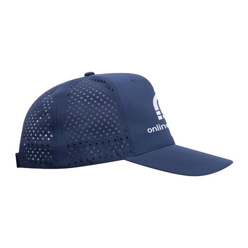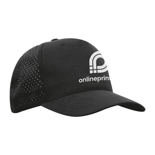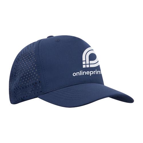 - 5-panel baseball cap made of polyester with a hook-and-loop fastener at the back and an inner sweatband
