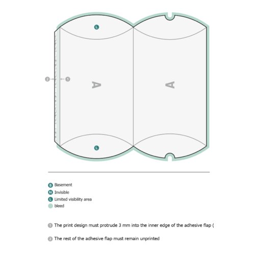 - The print design must protrude 3 mm into the inner edge of the adhesive flap (overfill); the rest of the adhesive flap must remain unprinted.