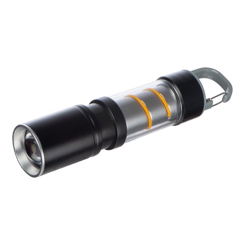 - The flashlight with blinking function also features an adjustable light beam and a light spiral on the shaft