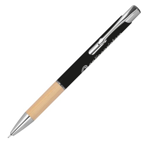 - It also features a bamboo grip zone, a blue-writing plastic refill (0.5 mm tip), and silver accents