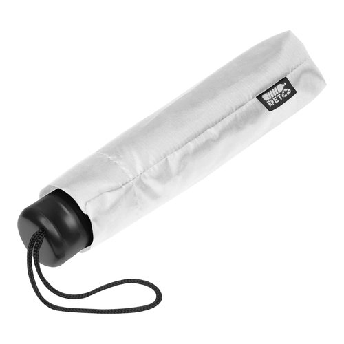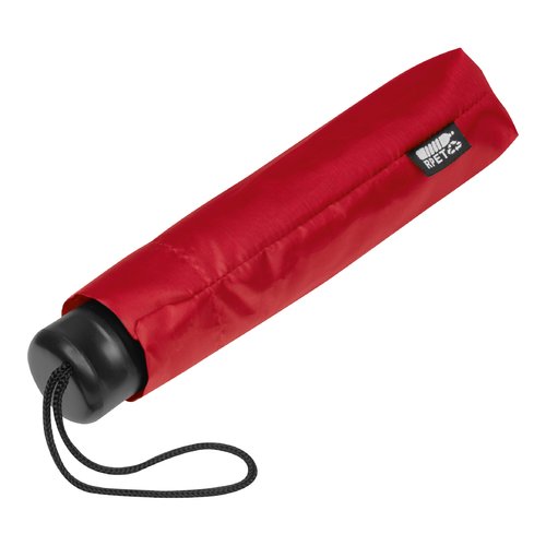 - Pocket umbrella made from recycled PET (canopy) and recycled ABS (plastic parts of the umbrella), featuring a carrying loop and metal frame