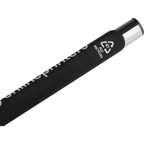 - Semi gel pen made of recycled aluminum with a rubberized surface and blue-writing large-capacity refill (semi-gel 0.7mm tip)
