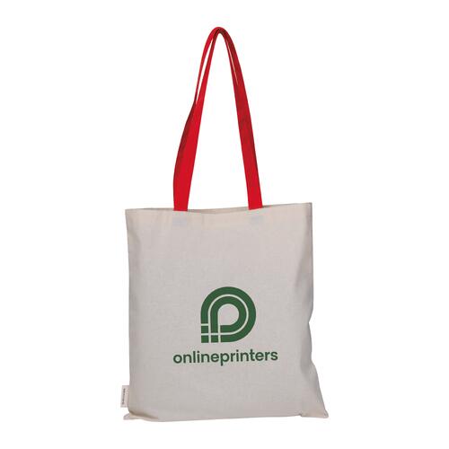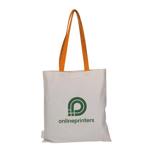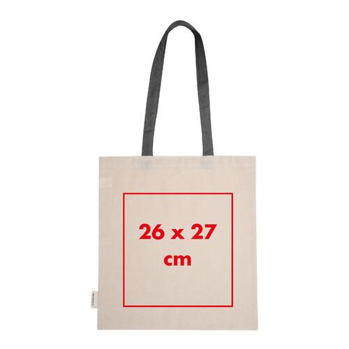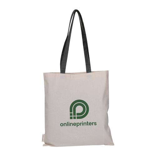 - Cotton bag with two long handles made of 75% recycled cotton and 25% recycled PET
