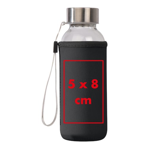 - transparent glass water bottles with stainless steel lid, wrist strap and neoprene sleeve