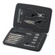 • For the road or at home, this 25-piece aluminium tool box with zipper contains 2 pliers, bits and screwdrivers in various sizes and tweezers