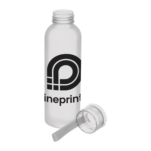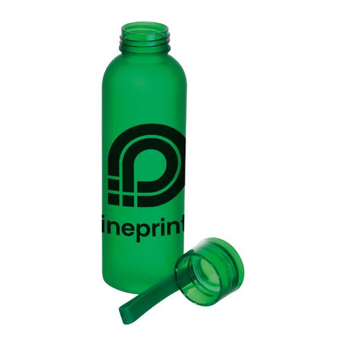- Drinking bottle made of PET with a rubber carrying handle on the lid and a capacity of 600 ml