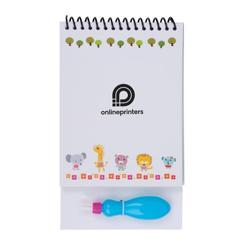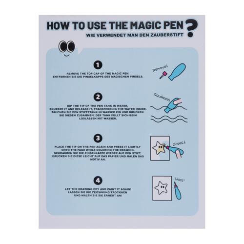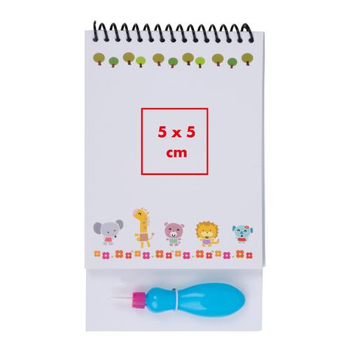 - Simply fill the brush with water and start painting on one of the four pages featuring fun animal motifs